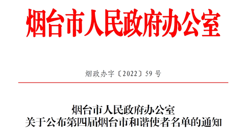 烟政办字〔2022〕59号关于公布第四届烟台市和谐使者名单的通知.pdf